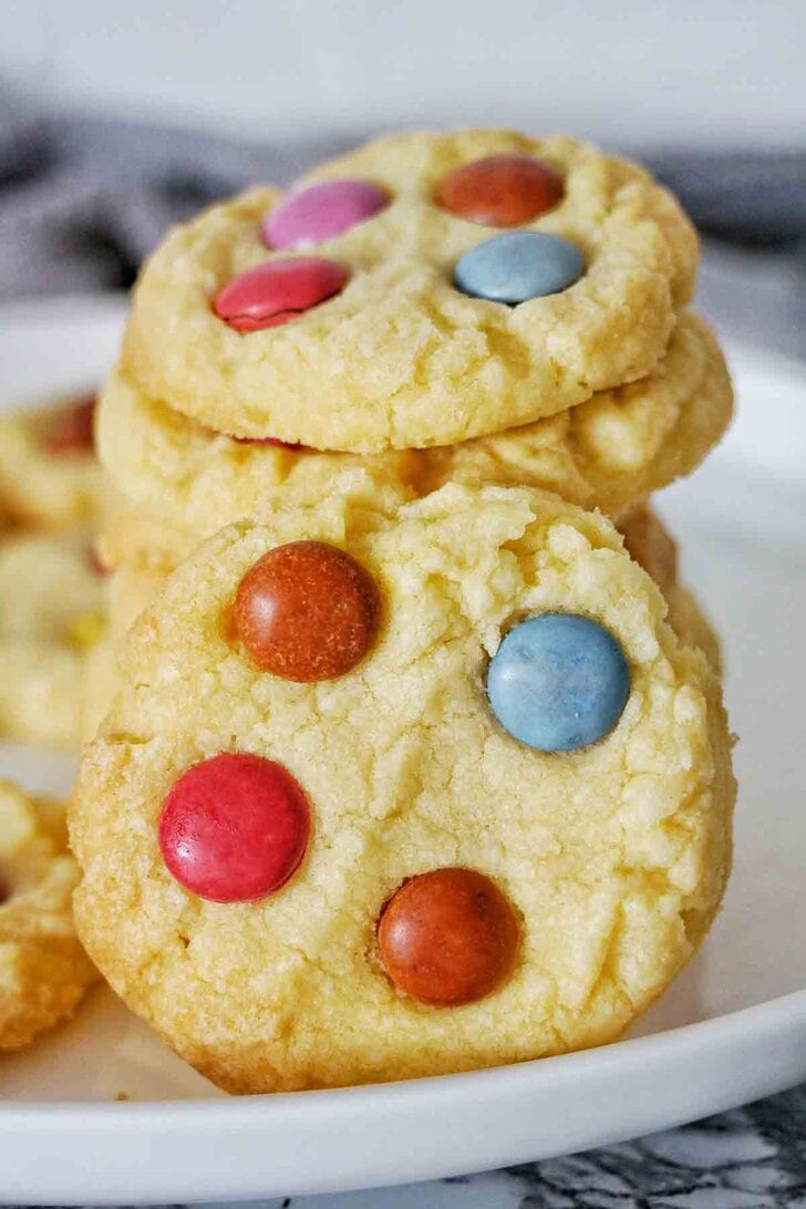 Smarties Cookies are a fun and colourful sweet treat! Also known as Smarties Biscuits or Dotty Cookies, they only use 5 ingredients! Perfect to make for both big and little kids, you will find yourself content with the simple ingredients and step by step instructions. Get your bake on with bright pops of colour with this easy smarties cookies recipe ๐Ÿ˜.